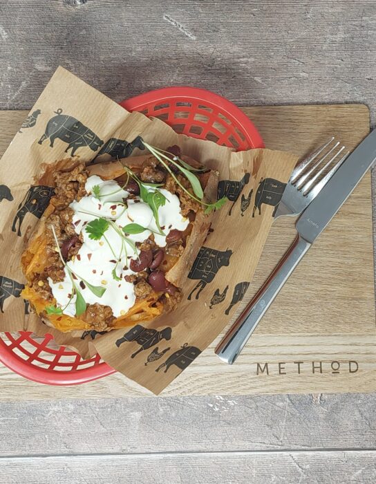 Once the chilli is ready give it a good seasoning and serve immediately with rice, nacho chips, sour cream and plenty of jalapenos!